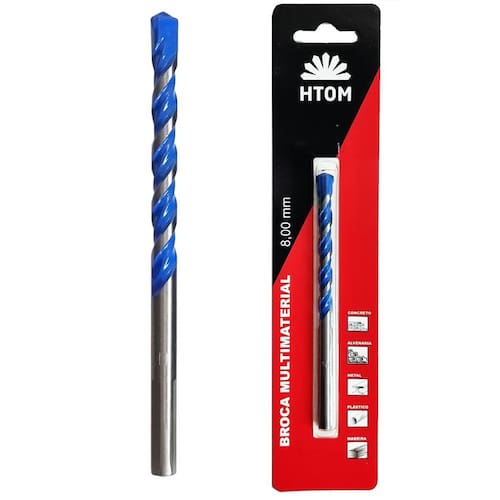 Broca 10mm Multifunção Multimaterial Fura Tudo Metal Duro HTOM - Marca: HTOM - Referência: HTOM-42508 - Diâmetro: 10mm - Comprimento total: 120mm - Comprimento do canal: 70mm - Diâmetro da haste: 8mm - Material Premium: Corpo em Aço Cromo e Ponta de Metal Duro MD - Broca multi-material para - Para perfurar vários tipos de materiais. - Arestas de corte afiadas com diamante que garantem a perfuração em uma maior variedade de materiais - Ponta centradora para garantir uma maior precisão - Espiral Quadrupla com núcleo reforçado para uma maior estabilidade e resistencia na perfuração além de uma excelente extração de pó - As brocas multimateriais multiConstruction possuem haste cilíndrica e pode ser utilizada com todas as parafusadeiras e furadeiras com ou sem impacto com ou sem fios - A broca destina-se a praticamente todos os materiais que se encontram em trabalhos de instalação em interiores, incluindo concreto macio, alvenaria, tijolo, fibrocimento, materiais de construção leves, materiais multicamada, cerâmicas e ladrilhos, madeira, plástico, chapa de metal fina e alumínio. - Em casos do uso em materiais muito duros e ou resistentes, recomenda-se furos em duas ou mais etapas, ou seja iniciar com uma broca de menor bitola e aumentado aos poucos - : 90 dias Marca: Não Informado