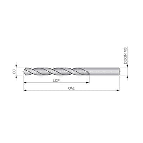 Broca com haste paralela, diâmetro 12mm com um comprimento total de 151mm e comprimento útil de 101mm de acordo com padrão DIN 338 com ângulo de ponta 118°, feita em HSS com acabamento revenido à vapor para furação sem guia 4xD em aço.