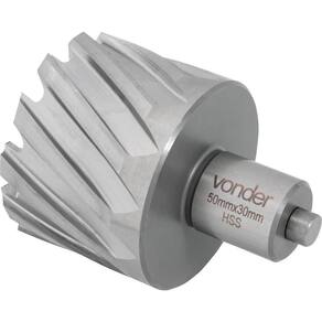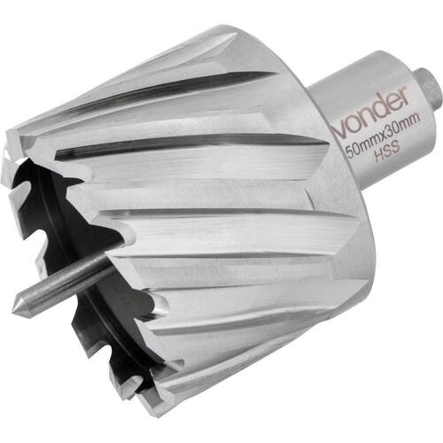 Ref. Fornecedor 5310050030Marca: VonderConteúdo da Embalagem:1 Broca anular. Acompanha: 1 pino guia/extrator de 6,35 mm x 77 mmDestaques e diferenciais:Proporciona corte macio e com bom acabamento, o encaixe padrão Weldon 19 mm garante perfeita fixação e segurançaAplicações e dicas de uso:Indicada para metais, desenvolvida para furadeiras de base magnéticaCaracterísticas Técnicas:Diâmetro da broca mm : 50,00 mm Comprimento total: 62,0 Comprimento útil da broca: 30,0 mm Tipo do encaixe: Weldon 19 mm Ean: 7893946677671