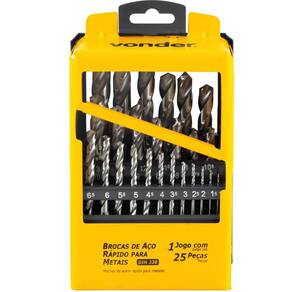 1 Jogo de brocas de aço rápido DIN 338, sendo: 1 broca de 1,0 mm, 1 broca de 1,5 mm, 1 broca de 2,0 mm, 1 broca de 2,5 mm, 1 broca de 3,0 mm, 1 broca de 3,5 mm, 1 broca de 4,0 mm, 1 broca de 4,5 mm, 1 broca de 5,0 mm, 1 broca de 5,5 mm, 1 broca de 6,0 mm, 1 broca de 6,5 mm, 1 broca de 7,0 mm, 1 broca de 7,5 mm, 1 broca de 8,0 mm, 1 broca de 8,5 mm, 1 broca de 9,0 mm, 1 broca de 9,5 mm, 1 broca de 10,0 mm, 1 broca de 10,5 mm, 1 broca de 11,0 mm, 1 broca de 11,5 mm, 1 broca de 12,0 mm, 1 broca de 12,5 mm e 1 broca de 13,0 mm.