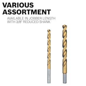 BOSCH TI2153, 1 peça, 13/32 polegadas x 5-1/4 pol. Broca de metal revestida com nitreto de titânio com 3/8 pol. Haste reduzida para aplicações em aços carbono de calibre pesado, metal leve e madeira dura - O revestimento de titânio superduro dura até seis vezes mais do que o aço de alta velocidade - O ponto de partida automático começa no contato - O canal duplo balanceado elimina vibrações e vibrações - O titânio reduz o calor para uma vida útil mais longa - Faça furos limpos e precisos nesses materiais finos (até 1/8 pol.): chapas metálicas, dutos, aço, cobre, latão, alumínio, plástico, acrílico, madeira, folheados, revestimento de vinil, gesso cartonado, PVC, aço inoxidável e ferro fundido