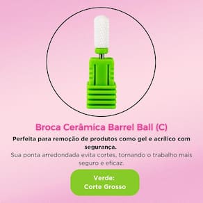 Contém: 01 - Broca Cerâmica Barrel Ball C Corte Grosso A broca ideal para profissionais que fazem alongamentos de unhas em todas as técnicas, com corte grosso para unhas, C Barrel Ball de cerâmica é uma ferramenta de alta performance, ideal para remoção de gel, acrílico e outros alongamentos com segurança e precisão. Seu corpo cilíndrico com ponta arredondada em forma de oferece um lixamento eficiente e ao mesmo tempo delicado, especialmente nas áreas próximas à cutícula, reduzindo o risco de cortes ou machucados. Por ser feita de cerâmica, ela aquece menos durante o uso, proporcionando mais conforto tanto para a profissional quanto para a cliente. Além disso, é resistente, durável e fácil de higienizar, sendo uma excelente escolha para quem busca um acabamento profissional com suavidade e segurança. Remove gel e acrílico com segurança, nivelando a unha sem risco de cortes. Características Principais: - 3/32; - Cerâmica; - Compatível com a maioria dos micromotores e lixadeiras elétricas; - Ideal para manicures; - Corte grosso; - Acompanha base e tampa protetora. Boas Compras ; Marca: Não Informado