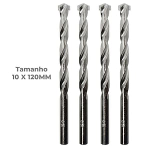 Informações Técnicas: - Broca para concreto - ponta de metal duro - Diâmetro da Broca: 10 mm - Comprimento Total: 120 mm - Aplicação: Superfícies duras, como concreto, pedra e alvenaria. - Ponta: Geometria otimizada para corte preciso - Velocidade Recomendada: Dependerá do material perfurado, mas geralmente alta para aço e metal.