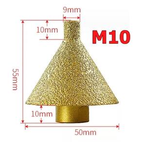 Broca Cônica Diamantada De Chanfrar Fresa Esmerilhadeira Broca Chanfrada de Diamante: Versatilidade e Eficiência em Perfurações Precisas Benefícios do Produto: - Versatilidade para chanfrar furos em diversos materiais. - Alta concentração de diamante para velocidade de corte rápida e vida útil prolongada. - Produção rigorosa garante baixa tolerância de tamanho e excelente desempenho de chanframento. - Ideal para entalhes laterais arredondados em tubos de acomodação ou linhas de fio elétrico. - Pode ser em condições secas ou úmidas, proporcionando resultados consistentes. Características do Produto: - Material: Diamante - Rosca M10 de 50mm de diâmetro - Dimensões: 50 x 50 x 55 mm Formas de Uso: - Utilize para chanfrar furos em vidro, granito, mármore, pedras, cerâmica e porcelanato. - Adequado para criar entalhes laterais arredondados em tubos ou linhas de fio elétrico. Por que Comprar Este Produto: 1. Versatilidade em perfurações, oferecendo precisão e eficiência. 2. Alta concentração de diamante garante durabilidade e desempenho excepcional. Marca: Não Informado
