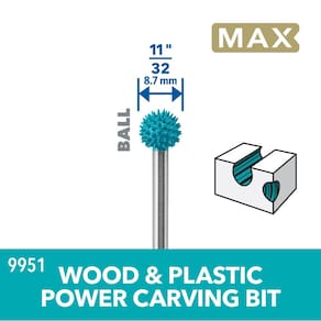 Dremel 9951 Ponta esférica 11/81.3 cm Power Rotary Carving Bit – Ideal para remoção e aplicação de suavização em madeira, plástico, espuma e borracha - Remoção de material 2x mais rápida em comparação com o Dremel 114 - O perfil "bola" de diâmetro de 11/81.3 cm permite que cortes inferiores sejam esculpidos e para modelagem agressiva de superfícies côncavas - Dentes de aço inoxidável endurecido permitem entalhes agressivos e altas taxas de remoção de material em madeira, plástico, espuma e borracha - Pode remover agressivamente o material e alisar a peça de trabalho para um acabamento pronto para lixamento final