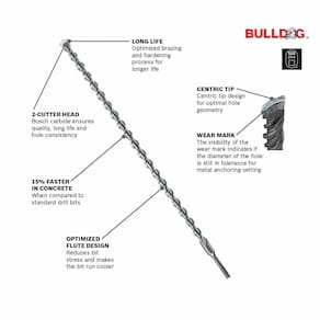 BOSCH HC2001B25 Pacote com 25 brocas de martelo rotativo Bulldog SDS-Plus 5/81.3 cm x 10.2 cm x 15.2 cm - Processo de brasagem e endurecimento otimizado para longa vida útil - 15% mais rápido (em comparação com S4L) - Bosch A ponta de carboneto feita é mais resistente e durável sob cargas pesadas - O processo de endurecimento Bosch exclusivo resulta em mais furos por bit - Ideal para aplicações de ancoragem e furos de passagem em concreto
