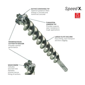 BOSCH HC5020 Broca de martelo rotativo de carboneto SDS-max Speed-X de 1,5 cm x 33 cm para perfuração de concreto - Universal: serve para todos os martelos SDS-max e martelos Hilti com hastes TE-Y/TE-FY - O comprimento total é de 33 cm - Durável: a cabeça de carboneto sólido é ideal para perfuração de alvenaria e concreto - Confiável: fica mais afiado por mais tempo para fazer mais furos do que as brocas dos concorrentes - Precisão: ponta centralizada guia a broca através de concreto duro e reforçado - Velocidade: os cortadores laterais inclinados têm uma borda agressiva para um corte mais rápido - A cabeça da broca com ponta de carboneto é mais dura, mais resistente e mais resistente a cargas extremas - Quatro faces de cinzel e arestas de corte dobram a ação de cinzelamento para uma perfuração mais eficiente - O diâmetro é de 1,5 cm - O comprimento útil é de 20 cm