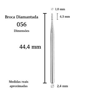 Kit com 5 Brocas Diamantadas 056 Brilho – Formato Cilíndrico com Topo Plano O kit contém 5 brocas diamantadas PM 056 Brilho, com formato cilíndrico e topo plano. Indicadas para ajustes e nivelamentos em áreas pequenas, garantem acabamento preciso e controle durante o uso. Dimensões aproximadas: comprimento total de 44,4 mm, ponta diamantada de 4,3 mm, diâmetro da ponta de 1,0 mm e haste padrão universal de 2,4 mm. Produzidas em aço inoxidável com revestimento diamantado, possuem abrasividade média (tarja azul), excelente durabilidade e compatibilidade com autoclave, estufa ou higienização química. Indicação de uso: acabamento e polimento técnico em superfícies pequenas e de difícil acesso.