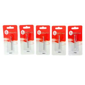 O kit contém 5 brocas diamantadas modelo PM 061 Brilho, no formato cilíndrico curto com topo plano. São indicadas para afastamento de cutículas, remoção de calosidades laterais e finalizações em curvaturas com precisão e segurança.