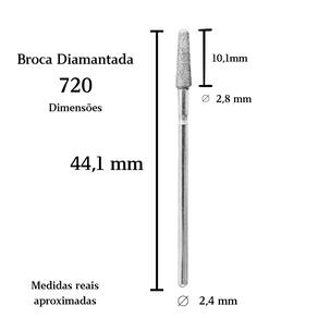 O kit contém 5 brocas diamantadas modelo PM 720 Brilho, no formato tronco-cônico com ponta arredondada. São amplamente utilizadas por profissionais para nivelamento uniforme de gel, acrílico ou lâmina ungueal, além de acabamentos próximos à cutícula com total controle e segurança.