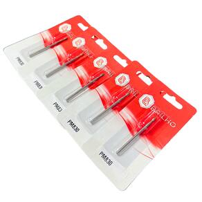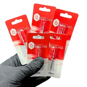 O kit contém 5 brocas diamantadas modelo PM 830 Brilho, no formato chama tradicional com corpo alongado e ponta afilada. Indicadas para limpeza de sulcos, cantos ungueais e levantamento de cutículas, oferecem precisão e controle em áreas de difícil acesso.