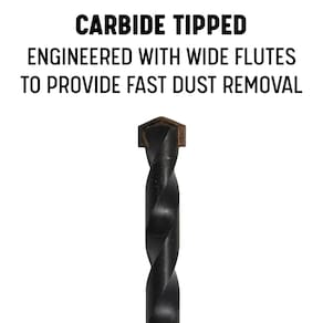 Pontas de metal duro soldadas em corpos de aço resistentes e são maiores que o tamanho nominal da broca para fornecer folga para a instalação de parafusos de ancoragem, escudos de expansão e parafusos de alavanca