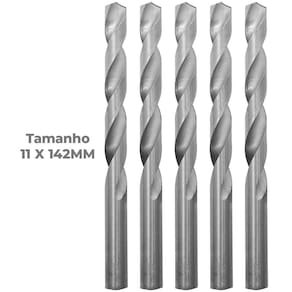 - Diâmetro da Broca: 11 mm - Comprimento Total: 142 mm - Material: Aço Rápido (HSS) - Norma: DIN 338 - Aplicação: Perfuração em metais. - Ponta: Geometria otimizada para corte preciso - Velocidade Recomendada: Dependerá do material perfurado, mas geralmente alta para aço e metal.