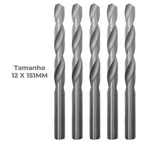 - Diâmetro da Broca: 12 mm - Comprimento Total: 151 mm - Material: Aço Rápido (HSS) - Norma: DIN 338 - Aplicação: Perfuração em metais. - Ponta: Geometria otimizada para corte preciso - Velocidade Recomendada: Dependerá do material perfurado, mas geralmente alta para aço e metal.