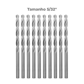 Informações Técnicas: - Diâmetro da Broca: 5/32” (aproximadamente 3,99 mm) - Comprimento Total: 75 mm - Material: Aço Rápido (HSS) - Norma: DIN 338 - Aplicação: Perfuração em metais. - Ponta: Geometria otimizada para corte preciso - Velocidade Recomendada: Dependerá do material perfurado, mas geralmente alta para aço e metal.