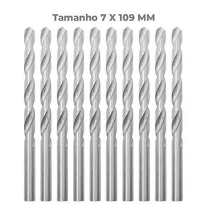- Diâmetro da Broca: 7 mm - Comprimento Total: 109 mm - Material: Aço Rápido (HSS) - Norma: DIN 338 - Aplicação: Perfuração em metais. - Ponta: Geometria otimizada para corte preciso - Velocidade Recomendada: Dependerá do material perfurado, mas geralmente alta para aço e metal.