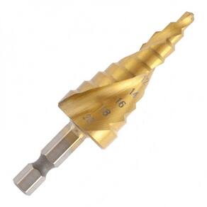 A Broca Escalonada é uma ferramenta de corte comumente feitas em Aço Rápido e Revestidas em Titânio, o que traz nela a coloração dourada. Sua principal característica é seu formato cônico, que difere das brocas cilíndricas mais comuns.