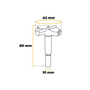 Diâmetro da broca: Ø42 mm Comprimento Total: 80 mm Haste: 10mm Material a furar: Madeira, alumínio, cortiça, placa sintética, vidro orgânico, pedra artificial etc. Tipo de corte: Vídeo Material: Aço Marca: Strong Embalagem: Unitária