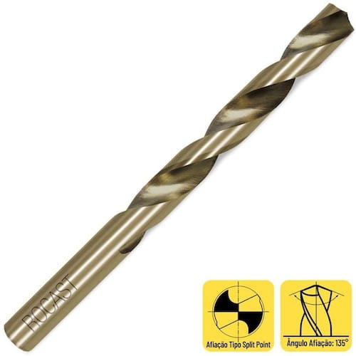 De acordo com a sua composição, a Broca pode ser em Titânio, Metal Duro, Aço Rápido, Com Cobalto, etc.