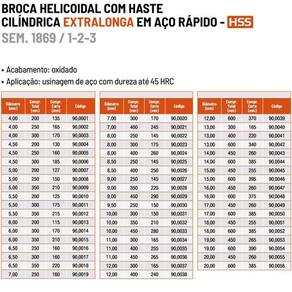 Broca Haste Paralela Extralonga - Med. 10mm x 450mm - Acabamento Oxidado, SEM. 1869 - Aço Rápido (HSS) - Ref. 90,0033 - ROCAST