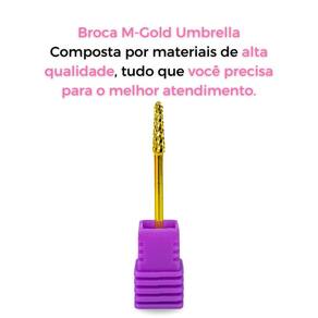 A broca de unhas M Gold Umbrella é um instrumento de alta qualidade para o uso em manicure e pedicure. Sua característica principal é o formato que lembra um "guarda-chuva" ou um cone com a ponta arredondada, o que a torna ideal para fazer o acabamento das unhas com segurança e precisão. Indicada para remover o excesso de gel, acrílico ou polygel, além de auxiliar no processo de nivelamento e suavização das unhas. Com seu design dourado, garante uma longa durabilidade. Facilita o trabalho sem danificar a superfície das unhas, oferecendo um acabamento suave e uniforme. Extremamente eficiente na remoção de resíduos, possibilitando um trabalho preciso e rápido, o que é ideal para quem busca resultados profissionais.