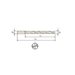 Broca Metal Duro 08,00 15XD Com Refrigeração Interna Tialn Dh515080 Yg-1 Características: Aplicação : Furação de Aços em Geral, aços fundidos, Ferro Fundido cinzento e nodular, metais leves não-ferrosos, plásticos abrasivos. Ferro Fundido, metais pesados não-ferrosos, Vantagens : Elimina furação pica-pau até 15 vezes (20 vezes) o diâmetro da broca. Permite o processo MQL (Quantidade Mínima de Lubrificante). Posicionamento Excelente - bucha-guia não é necessária. Design Especial - Ótima remoção de cavacos Furação Potente D1 - Diâmetro da Broca: 8 mm D2 - Diâmetro da Haste: 8 mm L1 - Comprimento do Corte: 144 mm L2 - Comprimento Total: 201 mm Profundidade de Perfuração: 15XD