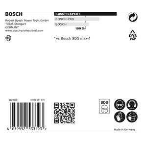 - Dura até 3 vezes mais que a broca SDS max-4 da Bosch- Ponta de broca excepcionalmente durável com Carbide Technology da Bosch.- Ponta centradora com ângulo de 90 proporciona uma perfuração estável do início ao fim- Ponta maciça em metal duro com 4 arestas de corte garantem desempenho e resistência excepcionais em concreto armado