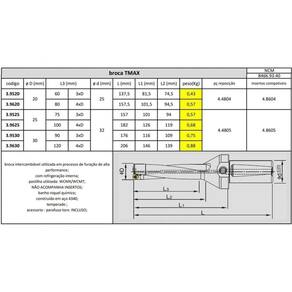 - Utiliza insertos WCMX 050308;- Diâmetro da broca: 30 mm;- Área de corte útil: 3xd = 90 mm;- Comprimento total: 176 mm;- Parafuso torx m3,0x8,0 t08 incluso;- Não acompanha Insertos;- Broca de alta performance para furação em peças, chapas individuais ou sobrepostas;- Fabricada com aço ferramenta, com tratamento térmico com capacidade de absorver vibrações;- Pode ser utilizada em tornos, fresas, centros de usinagem, furadeiras convencionais ou CNC