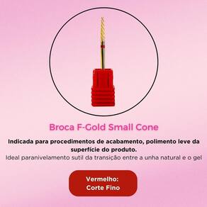 A broca ideal para profissionais que fazem alongamentos de unhas em todas as técnicas, com corte fino para unhas, F-Gold Small Cone é uma ferramenta delicada e precisa, com formato cônico e acabamento dourado, ideal para trabalhos detalhados como o acabamento próximo à cutícula, a limpeza de sulcos e o polimento suave da superfície da unha. Seu grão fino permite um desgaste controlado, garantindo segurança e suavidade no manuseio. Sendo ideal para limpeza delicada de sulcos e remoção suave de cutículas.