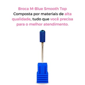 Feita com material de alta qualidade, a MBlue Smooth Top é projetada para remover com eficiência camadas de gel, acrílico ou polygel, além de ser útil para alisar e nivelar a superfície das unhas. Seu acabamento azul ajuda a identificar o tipo de abrasividade e agrega estilo à ferramenta, além de facilitar a distinção entre diferentes brocas.