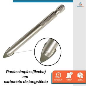 Características técnicas: - Material: Aço Carbono - Modelo: 10mm para Vidro - Ponta simples em carboneto de tungstênio - Encaixe: 1/4 Hexagonal - Ref.: 2501201 - Marca: Starfer