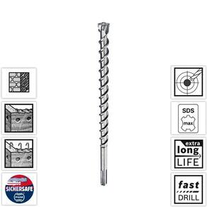 Sua ponta maciça em carbeto de tungstênio com 4 aresta de corte garantem desempenho e resistência excepcionais em concreto armado;