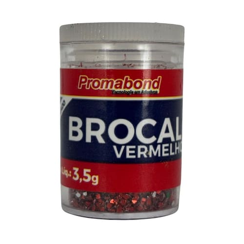 Brocal Vermelho 3,5gr Fabricante - Outros Materiais Escolares e Esc: Promabond O Brocal Metálico 3,5g é um produto indispensável para quem deseja adicionar um toque de brilho e sofisticação aos seus trabalhos manuais. Com partículas metálicas ultrarrefletivas, ele proporciona um acabamento cintilante e vibrante, ideal para artesanato, decoração, customização de roupas e acessórios, além de diversas aplicações criativas. Seja para destacar um detalhe especial ou para cobrir superfícies inteiras com um efeito luminoso deslumbrante, o brocal metálico é fácil de aplicar e garante um resultado . Principais Benefícios: - Brilho Intenso e Duradouro: As partículas metálicas refletem a luz de forma excepcional, proporcionando um acabamento sofisticado e reluzente. - Versatilidade de Aplicação: Pode ser utilizado em papelaria, scrapbooking, customização de roupas, decoração de festas, unhas artísticas, maquiagem artística com fixador adequado , confecção de fantasias e muito mais. - Fixação Segura: Pode ser aplicado com cola branca, cola para artesanato, verniz, gel fixador ou outros produtos adequados ao material utilizado. - Embalagem Compacta e Econômica: Contém 3,5g de brocal metálico, quantidade ideal para diversos tipos de projetos sem desperdício. Disponível em Diversas Cores: Escolha a tonalidade que melhor se adapta ao seu trabalho e crie efeitos personalizados e únicos. Fácil de Usar: Basta espalhar sobre a superfície desejada e aguardar a secagem do fixador para um resultado impecável. Como Usar o Brocal Metálico - Prepare a Superfície: Aplique uma fina camada de cola ou verniz no local onde deseja fixar o brocal. - Aplique o Brocal: Espalhe o pó metálico de forma uniforme sobre a cola ainda úmida. - Aguarde a Secagem: Deixe secar completamente para garantir uma fixação perfeita. - Remova o Excesso: Se necessário, utilize um pincel seco para retirar partículas soltas e obter um acabamento mais limpo. IMAGENS MERAMENTE ILUSTRATIVAS