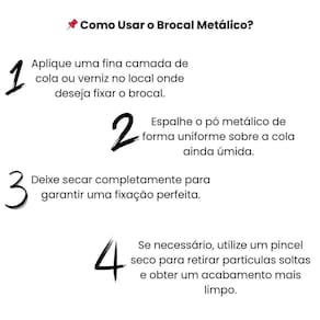 Brocal Vermelho 3,5gr Fabricante - Outros Materiais Escolares e Esc: Promabond O Brocal Metálico 3,5g é um produto indispensável para quem deseja adicionar um toque de brilho e sofisticação aos seus trabalhos manuais. Com partículas metálicas ultrarrefletivas, ele proporciona um acabamento cintilante e vibrante, ideal para artesanato, decoração, customização de roupas e acessórios, além de diversas aplicações criativas. Seja para destacar um detalhe especial ou para cobrir superfícies inteiras com um efeito luminoso deslumbrante, o brocal metálico é fácil de aplicar e garante um resultado . Principais Benefícios: - Brilho Intenso e Duradouro: As partículas metálicas refletem a luz de forma excepcional, proporcionando um acabamento sofisticado e reluzente. - Versatilidade de Aplicação: Pode ser utilizado em papelaria, scrapbooking, customização de roupas, decoração de festas, unhas artísticas, maquiagem artística com fixador adequado , confecção de fantasias e muito mais. - Fixação Segura: Pode ser aplicado com cola branca, cola para artesanato, verniz, gel fixador ou outros produtos adequados ao material utilizado. - Embalagem Compacta e Econômica: Contém 3,5g de brocal metálico, quantidade ideal para diversos tipos de projetos sem desperdício. Disponível em Diversas Cores: Escolha a tonalidade que melhor se adapta ao seu trabalho e crie efeitos personalizados e únicos. Fácil de Usar: Basta espalhar sobre a superfície desejada e aguardar a secagem do fixador para um resultado impecável. Como Usar o Brocal Metálico - Prepare a Superfície: Aplique uma fina camada de cola ou verniz no local onde deseja fixar o brocal. - Aplique o Brocal: Espalhe o pó metálico de forma uniforme sobre a cola ainda úmida. - Aguarde a Secagem: Deixe secar completamente para garantir uma fixação perfeita. - Remova o Excesso: Se necessário, utilize um pincel seco para retirar partículas soltas e obter um acabamento mais limpo. IMAGENS MERAMENTE ILUSTRATIVAS Marca: Não Informado