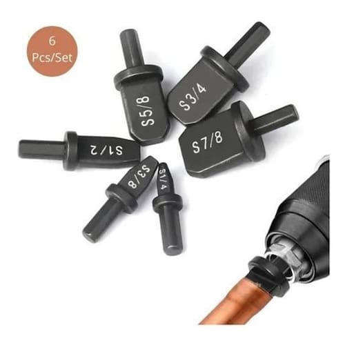 Brocas Alargador Expansor Cano Tubo De Cobre Alumínio 6 Pcs O Kit Alargador / Expansor é ideal para fazer alargar tubo de cobre rígido e flexível e também tubos de alumínio para fazer conexões de tubulações de ar condicionado e muito mais. Robusto, fácil de usar e longa vida útil. Possui 6 tamanhos para te ajudar nos mais diversos tipos de trabalho, dando padronização ao serviço. Pode ser em furadeira manual. Ferramenta ideal para instaladores de ar condicionado. Detalhes: Material: Aço Quantidade: 6 Peças Tamanhos: 7/8 polegadas 22.2mm 3/4 polegadas 19mm 5/8 polegadas 15.9mm 1/2 polegadas 12.7mm 3/8 polegadas 9.5mm 1/4 polegadas 6.3mm Marca: Não Informado