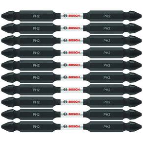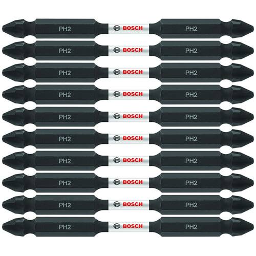 BOSCH ITDEPH235B Pacote com 10 brocas Phillips nº 2 resistentes a impactos para aparafusamento de extremidade dupla - Vida útil 10 vezes acima das brocas de impacto padrão - A zona de torção Xtended ajuda a absorver alto torque de novos acionadores de impacto - Pontas projetadas com precisão para um ajuste mais apertado e menos CAM - Fabricação com tratamento térmico para uma broca mais forte - Manga de alta visibilidade com marcações gravadas a laser para conveniência do usuário