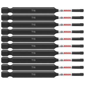 BOSCH ITT1535B Pacote com 10 brocas Torx #15 de 7,5 cm - 10 x vida útil sobre brocas de impacto padrão - A zona de torção Xtended ajuda a absorver alto torque de novos drivers de impacto - Pontas projetadas com precisão para um ajuste mais apertado e menos saída CAM - Fabricação com tratamento térmico para uma broca mais forte - Manga de alta visibilidade com marcações gravadas a laser para conveniência do usuário