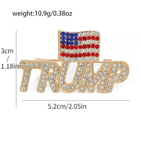 Material: liga Tamanho: 5,2 x 3 cm Peso: 10,9 g Quantidade: você receberá todas as peças em quantidade igual à primeira foto principal ShowStatement Design — Apresenta um impressionante motivo de letra sob uma bandeira americana incrustada de strass, projetada para chamar a atenção e expressar uma forte identidade patriótica ou política. Acabamento em cristal — Adornado com strass claros e coloridos, o broche brilha intensamente sob a luz, tornando-o perfeito para eventos ou uso diário. Material de liga — Construído em liga resistente com revestimento dourado, proporcionando durabilidade e resistência a manchas ou desgaste ao longo do tempo. Suporte de alfinete — vem com um fecho de alfinete forte e confiável, permitindo fácil fixação em jaquetas, camisas, chapéus, cachecóis ou bolsas sem escorregar. Para ocasiões patrióticas — Perfeito para comícios, festas temáticas, feriados nacionais ou como acessório de moda para quem quer se destacar com uma aparência orgulhosa.