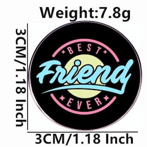 Material: Liga Tamanho: 3 x 3 cm Peso: 7,8 g Quantidade: você receberá todas as peças em quantidade igual à primeira foto principal Show Design retrô: apresenta um broche redondo de esmalte com cores pastel e texto ousado de “Melhor amigo de todos os tempos”, dando uma aparência elegante e nostálgica. Construção em liga durável: feita de liga de qualidade com revestimento de esmalte suave, garantindo conforto leve, durabilidade duradoura e cores vibrantes. Compacto e leve: mede 3x3 cm e pesa 7,8 g, o que o torna fácil de usar diariamente e conveniente de transportar sem aumentar o volume. Acessório versátil: funciona como alfinete de blusa, alfinete de lapela ou crachá para jaquetas, mochilas, chapéus e camisas, adequado para uso casual ou roupas temáticas. Estilo unissex: projetado para homens e mulheres, este broche esmaltado adiciona charme e personalidade, perfeito para estudantes, amantes da moda e criadores de tendências.