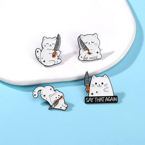 Material: liga Tamanho: 2,5 x 3 cm Peso: 12 g Quantidade: você receberá todas as peças em quantidade igual à primeira foto principal ShowPlayful Cat Knife Design: apresenta gatos brancos de desenhos animados segurando facas em poses engraçadas, fazendo uma declaração ousada e peculiar. Material de liga durável: feito de liga resistente com revestimento de esmalte para textura suave, cores vivas e desgaste duradouro. Acessórios versáteis: funcionam como alfinetes de blusa, broche, broche de lapela ou crachá, perfeitos para jaquetas, mochilas, chapéus e cachecóis. Compacto e leve: cada peça mede cerca de 2,5 x 3 cm e pesa 12 g, fácil de colocar sem aumentar o volume. Estilo exclusivo para todos: uma opção divertida de acessório para mulheres, homens e adolescentes que gostam de moda não convencional e divertida com temas de animais.