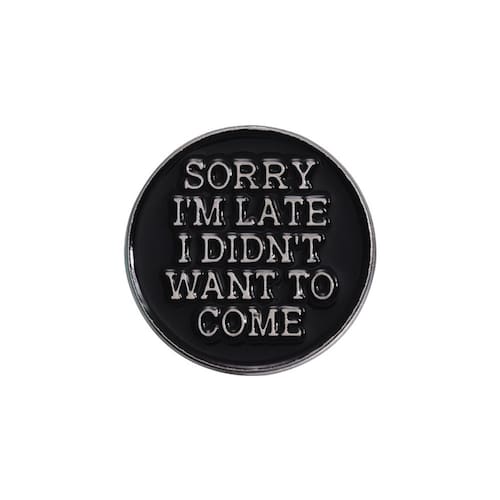 Material: Liga Tamanho: 3 x 3 cm Peso: 5 g Quantidade: você receberá todas as peças em quantidade igual à primeira foto principal Mostrar declaração de design — Apresenta letras brancas em negrito em um fundo preto redondo que diz “Desculpe, estou atrasado, não queria vir”, adicionando sarcasmo divertido a qualquer roupa. Material de liga — Feito de liga resistente com acabamento liso em esmalte, este broche garante brilho duradouro e resistência ao desgaste. Leve — Medindo 3x3 cm e pesando apenas 5 g, este broche é fácil de transportar e confortável de usar em roupas ou acessórios. Estilo — Perfeito como alfinete de lapela, alfinete de blusa ou crachá, ele combina facilmente com jaquetas, camisas, mochilas ou chapéus para looks casuais ou de rua. Acessório de moda — Projetado para homens e mulheres, este broche inteligente é ideal para festas, eventos sociais ou uso diário para mostrar personalidade e humor.