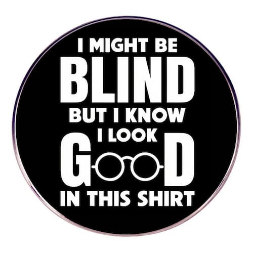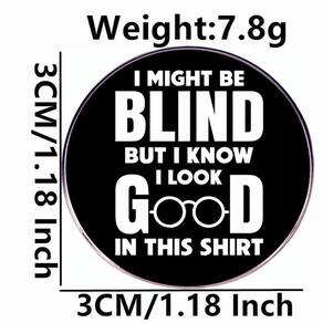Material: liga. Tamanho: 3x3 cm Peso: 7,8 g Quantidade: você receberá todas as peças em quantidade igual à primeira foto principal. Design do ShowQuote — Apresenta letras brancas em negrito com uma estampa de óculos e a frase engraçada “Posso ser cega, mas sei que fico bem nesta camisa”. Material de liga — Feito de liga de alta qualidade, resistente ao desbotamento e flexão, garantindo que o pino do broche permaneça elegante e durável. E leve — Com um tamanho de 3x3 cm e um peso de 7,8 g, é confortável de usar e fácil de colocar em qualquer roupa. Uso — Perfeito como alfinetes de blusa, broche ou crachás de lapela para jaquetas, chapéus, cachecóis, mochilas e roupas do dia a dia. Acessório — Ótimo para homens e mulheres que gostam de acessórios peculiares, sarcásticos e engraçados para uso casual, festas ou estilo diário.