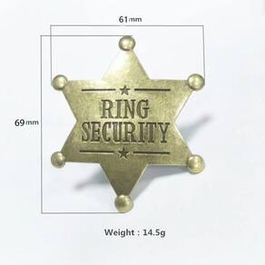 Material: liga Tamanho: 6,1 x 6,9 cm Peso: 14,5 g Quantidade: você receberá todas as peças em quantidade igual à primeira foto principal. Mostre um design exclusivo de segurança de anel — broche de estrela de seis pontas gravado com a letra “Ring Security”, adicionando um toque ousado e criativo a qualquer roupa. Material de liga durável — Feito de liga de alta qualidade com acabamento em bronze antigo, resistente ao desbotamento e ao desgaste. Acessório multiuso — funciona como broche, alfinete de blusa, alfinete de lapela ou crachá para jaquetas, uniformes, chapéus e bolsas. Estilo retrô ocidental — O design vintage de estrela em estilo xerife o torna atraente e elegante para ocasiões temáticas. Leve e prático — medindo 6,1 x 6,9 cm e apenas 14,5 g, confortável de usar e fácil de colocar ou remover.