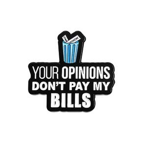 Material: Liga Tamanho: 3 x 2,9 cm Peso: 6 g Quantidade: você receberá todas as peças em quantidade igual à primeira foto principal ShowQuote Design — Apresenta letras em negrito com a frase “Suas opiniões não pagam minhas contas” ao lado de uma estampa de lata de lixo azul, tornando-a uma declaração de moda engraçada e confiante. Material de liga — Feito de liga de qualidade com revestimento de esmalte liso, resistente ao desbotamento e arranhões para uso duradouro. Compacto — Medindo 3x2,9 cm e pesando apenas 6g, este broche é portátil, fácil de usar e confortável para o estilo diário. Acessório — Funciona como alfinete de blusa, alfinete de lapela ou crachá, perfeito para dar personalidade a jaquetas, camisas, mochilas, chapéus ou cachecóis. Estilo de streetwear — Adequado para homens e mulheres, este broche é ideal para uso casual, festas, eventos ou como um acessório moderno para mostrar atitude.