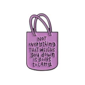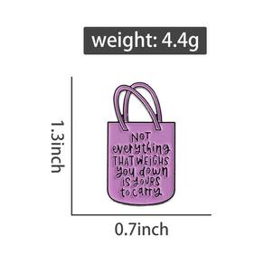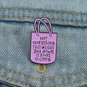 Material: liga Tamanho: 1,9 x 3,4 cm Peso: 4,4 g Quantidade: você receberá toda a quantidade de peças da mesma imagem principal. Design do ShowQuote — Apresenta um formato de sacola rosa com a mensagem empoderadora “Nem tudo que pesa é seu para carregar”, adicionando motivação e positividade à sua roupa. Construção em liga — Feita de liga de alta qualidade com revestimento de esmalte liso, garantindo cores brilhantes, resistência ao desbotamento e desgaste duradouro. E leve — Medindo 1,9 x 3,4 cm e pesando apenas 4,4 g, este broche é portátil, fácil de usar e confortável para uso diário. Acessório — Funciona como alfinete de blusa, alfinete de lapela ou crachá, perfeito para estilizar com jaquetas, camisas, chapéus, mochilas ou outros acessórios de vestuário. Estilo — Projetado para homens e mulheres, este broche significativo é ideal para uso escolar, profissional, casual ou como peça de moda motivacional para mostrar personalidade.