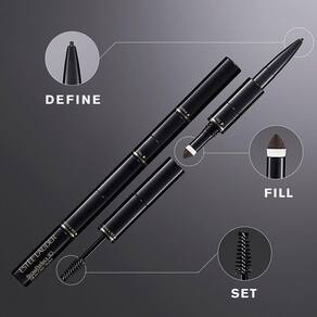 - DEFINIÇÃO: Use a ponta de microprecisão do lápis para definir e melhorar a forma de suas sobrancelhas naturais. Aplique uma leve pressão para desenhar traços semelhantes a cabelos e construir o visual de natural a ousado.