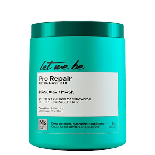 O Btx Pro Repair Ultra Mask - Passo Único Let Me Be 1kg possui formulação rica em óleo de coco, queratina, colágeno e polímero condicionante de alta performance, que sob ativação térmica restaura os fios extremamente danificados.