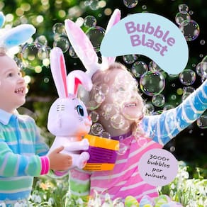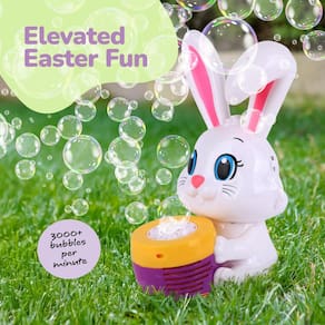 Dê vida às suas celebrações de Páscoa com esta encantadora máquina de bolhas! Com um design encantador de coelho e melodias alegres, mantém os pequenos entretidos com um fluxo hipnotizante de bolhas. Pré-carregado com baterias e solução de bolhas, está pronto para jogar direto da caixa. Perfeito para caçadas de Páscoa, festas e reuniões de família, adiciona uma peça central alegre a qualquer evento enquanto cria memórias inesquecíveis para crianças e adultos.