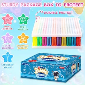 - Tamanho mini ideal e fácil de brincar: Medindo cerca de 10,5 cm, estas varinhas de bolhas têm o tamanho perfeito para crianças e adequadas para todos. Cada varinha possui um design exclusivo que é fácil para mãos pequenas segurarem e contém 7,1 g (cerca de 6 ml) de solução de bolha pré-preenchida em um tubo de plástico resistente. A solução de alta qualidade permite que as crianças soprem bolhas coloridas de longa duração. Basta mergulhar, acenar ou soprar suavemente, e eles podem desfrutar de um maravilhoso momento de bolhas. As varinhas também são reutilizáveis.