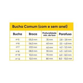 Com bitola de 6mm, esta bucha é compatível com parafusos de rosca madeira ou auto atarraxante, tornando-a versátil e pronta para diversas aplicações em sua casa ou escritório.